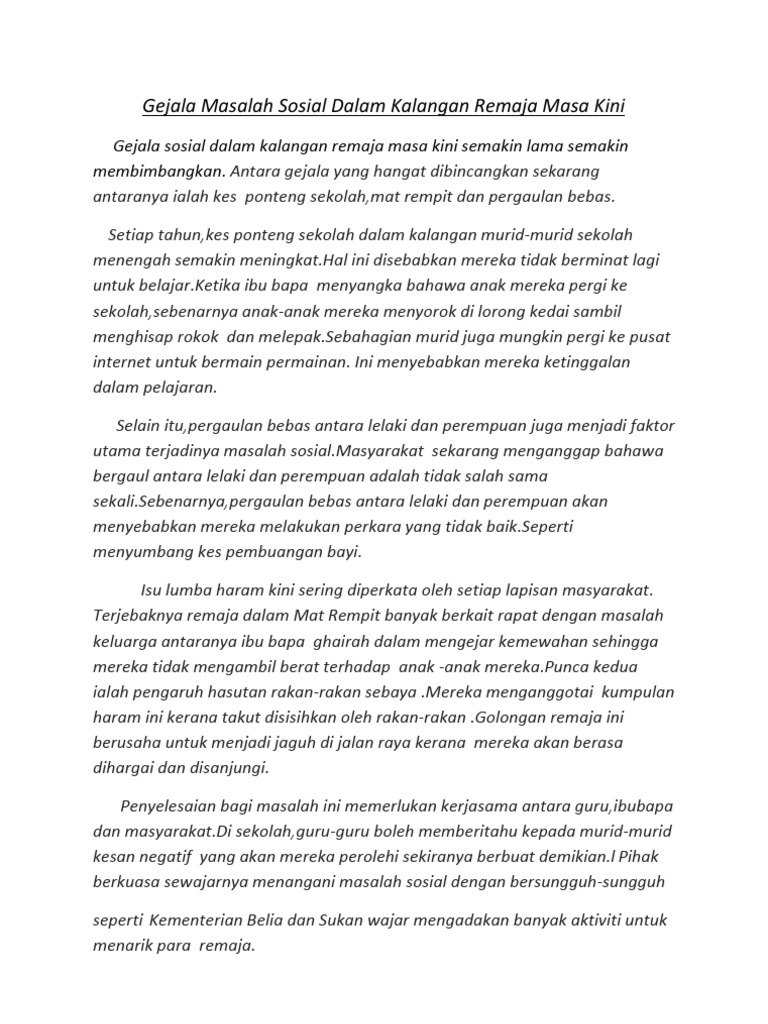Awasome Contoh Karangan Spm Gejala Sosial Dalam Kalangan Remaja References
